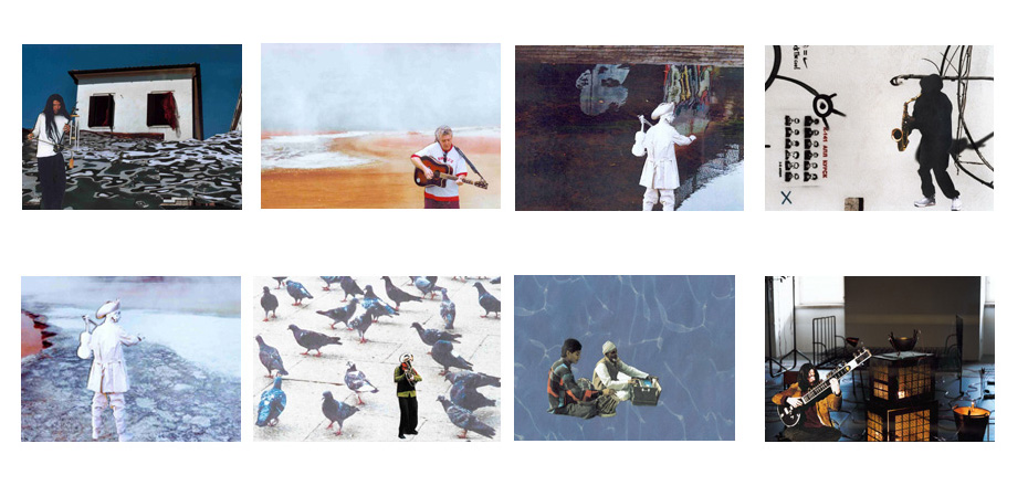 Serie "Musik der Straße", Fotomontagen/Scans, 30x40 cm, 2009 animiert und vertont im Foto-Musikfilm Gegen die Kälte des Raumes / Music Against the Cold Space von Jutta Hieret / Ute Reisner, 2009