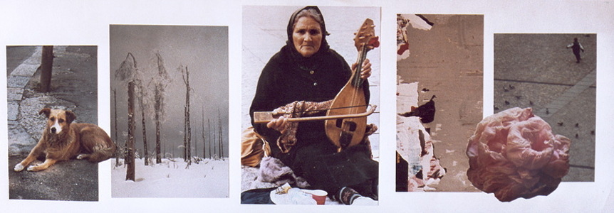 Alte Frau am Centre Pompidou - Serie "Menschenbilder - Geschichten erzählen", 2006, Fotocollage, 35 x 100 cm
