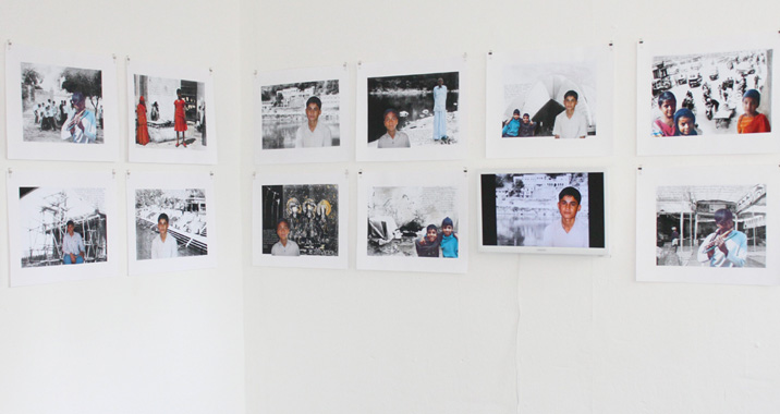 Karma - Wege der Kinder, 2015 - Serie Fotocollagen - Mixed Media, Texte, Bildschirmpräsentation - Detail Collagen Spuren. Suche. Begegnungen, Orgelfabrik Karlsruhe, 2015 - Begegnung Gretel Haas-Gerber - Pressebericht