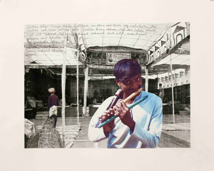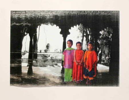 Serie "Karma - Wege der Kinder", Detail Fotocollagen mit Texten, 2015, 40 x 50 cm im Passepartout - > Installation