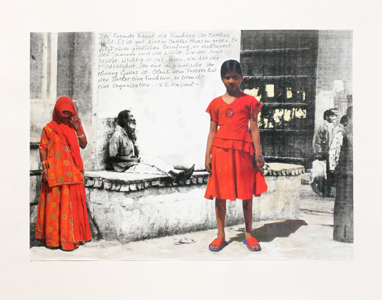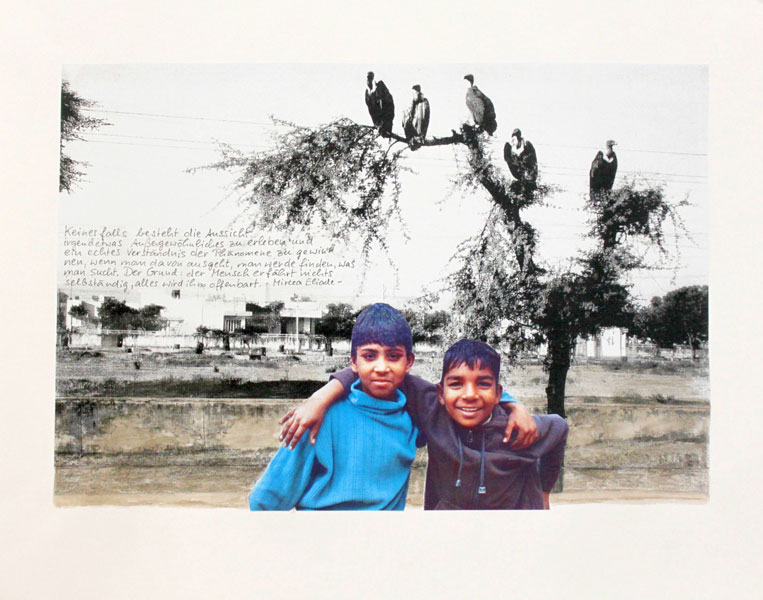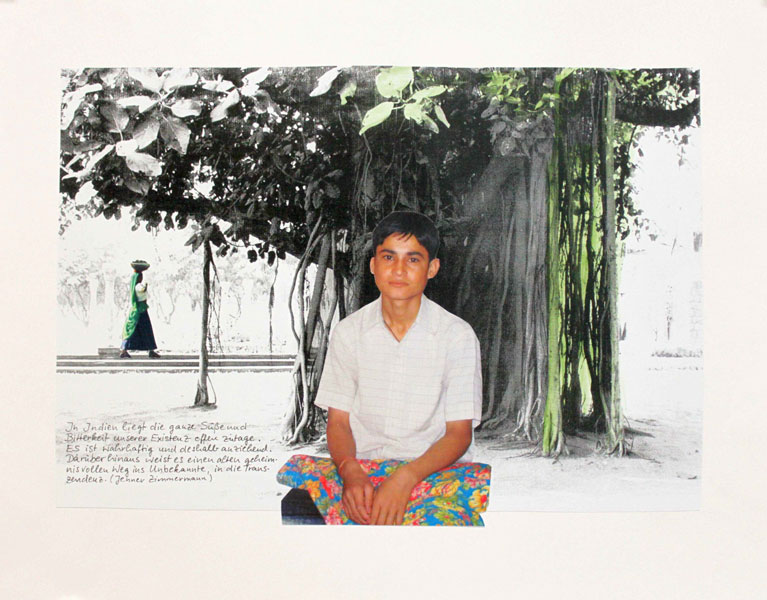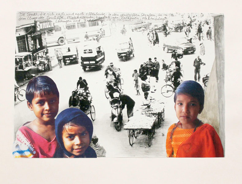 Serie "Karma - Wege der Kinder", Fotocollagen mit Texten, 2015, 40 x 50 cm im Passepartout - Orgelfabrik 2015 > Installation