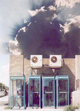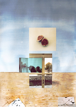 Blaue Zeit | Kommunikation Constantia - aus der Serie Reisebilder, 2004 - 2005 Mixed Media, Aquarell/Fotografie - Collage, 100 x 70 cm | Mischtechnik mit fotografischen Elementen, ca. 50 x 40 cm