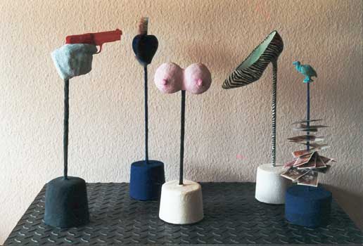 Kleinplastiken, Objektmontagen auf Gipssockeln, ca. 30 - 55
