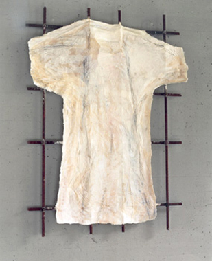 Relief "Gewand", 1993, ca. 135 x 100 cm, Baustahl, Gips, Papier, Farbe